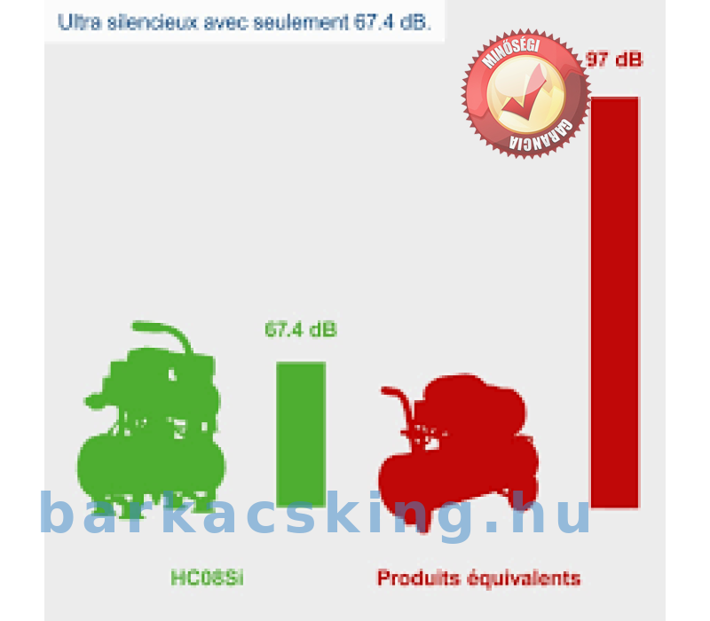 *A hangerő szintjei a közelségtől és a helytől függően változhatnak, és a vezérlőpulttól számított 7 méterről mérték.A Scheppach, műszer és házban Ultra Silent HC08Silent munkái körül. Alacsony zajszintű kompresszorként alacsony zajszintjével nyűgöz le így a szomszédokat sem zavarják.