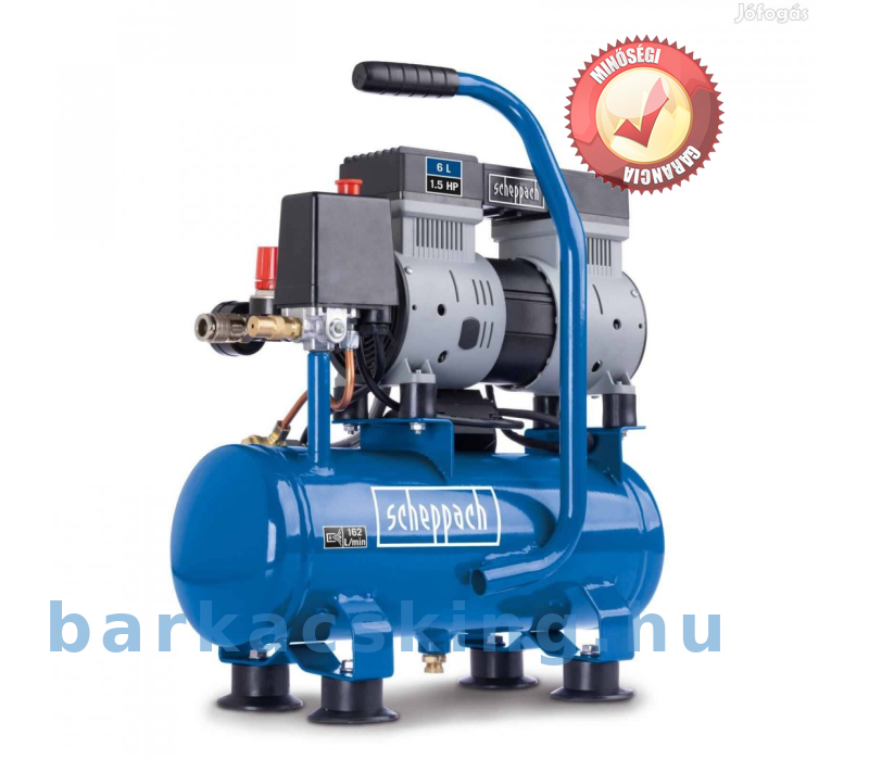 A Scheppach Ultra Silent Compressor HC08Si egy kompakt segítő ház, műhely vagy garázs körüli használatra. 8 bar üzemi nyomásával, 6 literes sűrített levegős tartállyal és 162 liter/perc szívóteljesítményével a HC08Si ideális otthoni használatra. A kompakt kialakításnak és az ergonomikus szállítófogantyúnak a kompresszor csak különösen takarékos, hanem könnyen szállítható, ezért ideális mobil használatra.