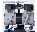 A 162 l/perc szívóteljesítményével az erős kompresszor alkalmas kerékpárgumik, golyók vagy autógumik felfújására, valamint sűrített levegővel működő szerszámok működtetésére.