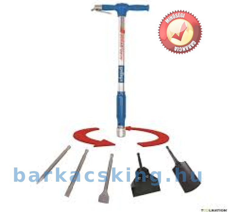 Az öt eszköz tartozék, a vésőszártól a kaparón keresztül az ásólapig, igazán univerzális használatot jelent.