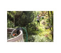 A kerti tömlő vagy öntözőrendszer közvetlenül a függesztő fogantyúhoz csatlakozik, azaz a vízszint felett, egy hüvelykes csatlakozáson keresztül. Nincs a vizes szivattyúval való babrálás, nincs állandóan az esőhordóból kilógó kerti tömlő. A szivattyú a hordóban marad, a kerti tömlő szépen feltekerhető és a napi öntözés gyorsan elvégezhető.