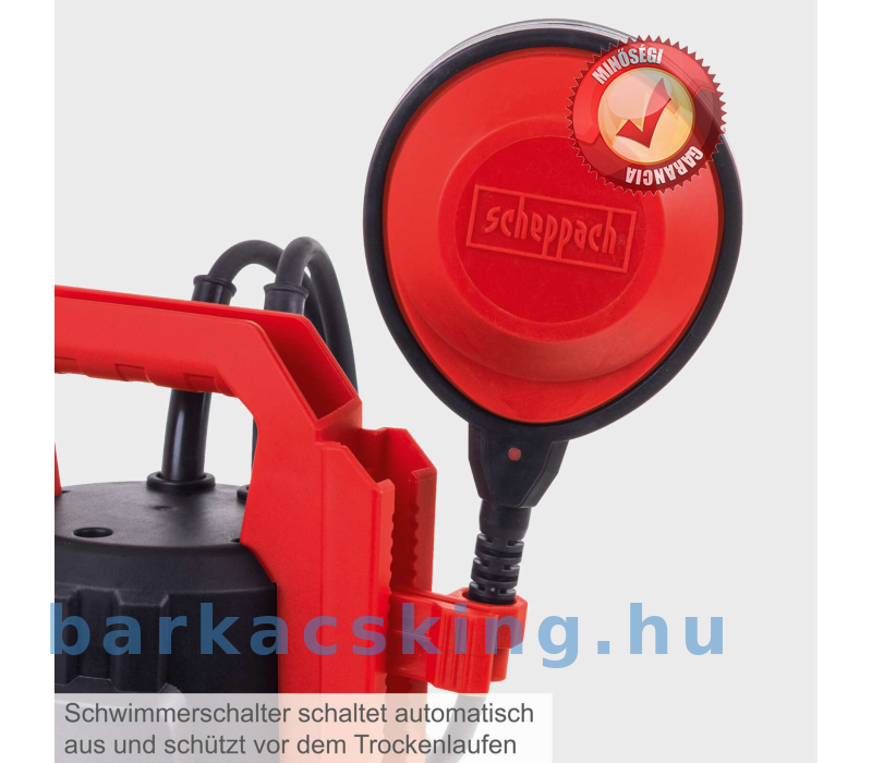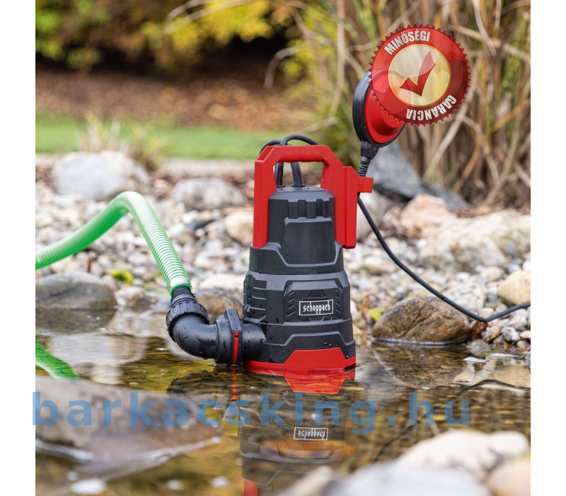A Scheppach praktikus DWP400 szennyvíz szivattyúja ideális kerti öntözéshez, tartályok használatához, valamint medence- vagy tóvíz leeresztéséhez. A gyorscsatlakozónak a hagyományos kerti tömlők (G1" és G1½" méretűek) könnyen csatlakoztathatók. Az integrált úszókapcsoló véd a szárazon futás ellen, és folyamatos üzemhez rögzíthető. Erős, 400 wattos motorjával és 0,6 bar maximális ürítési nyomásával a DWP400 óránként akár 9000 liter vizet is képes szivattyúzni.