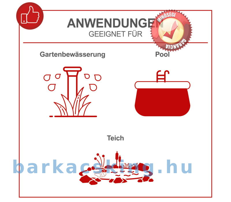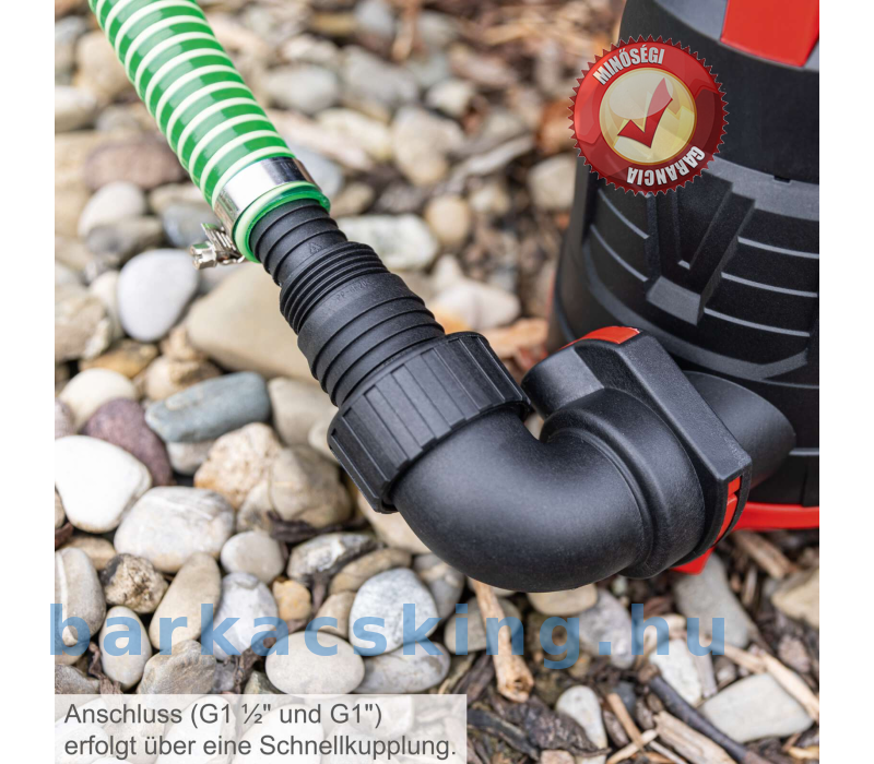 - Tartós, G1" és G1½" méretű szívó- és nyomócsatlakozók – lehetővé teszi a hagyományos kerti tömlők egyszerű csatlakoztatását