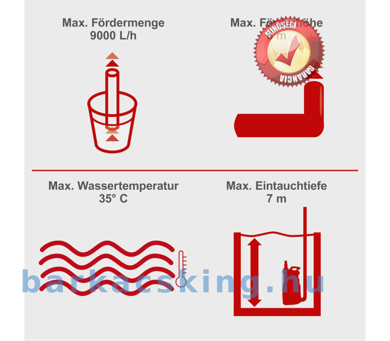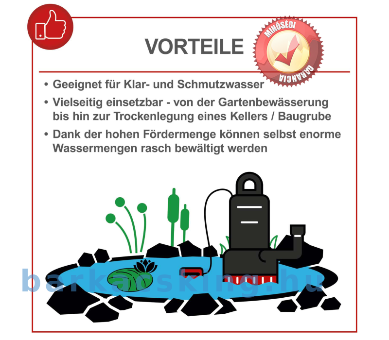 - Robusztus, ütésálló szivattyúház nagy teljesítményű 400 W-os motorral