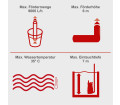 - Különösen 9000 l/h áramlási sebesség – ez lehetővé teszi még nagy mennyiségű víz kezelését is