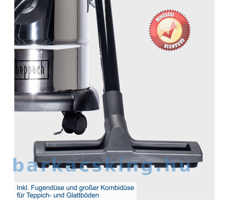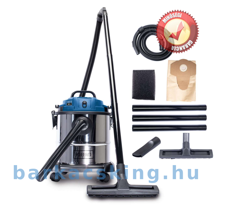 Hordozófogantyújával, beépített kábeltartójával, robusztus rozsdamentes acél tartályával és praktikus görgőivel a Scheppach NTS20 nélkülözhetetlen társ a házban és a műhelyben. Az erős 1200 W-os motor megbízható és erős szívóerőt biztosít. A nagy, méteres munkakör6 praktikus nedves/száraz porszívó még a legeldugottabb sarkokat és réekben is elérhető. Az NTS20 beépített fúvó funkcióval rendelkezik, amely számos feladatot tartalmaz.