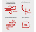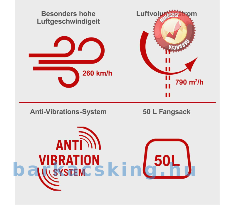 - Könnyű és ergonomikus kialakítású, rezgéscsillapító rendszerrel a fáradtság csökkentésére.