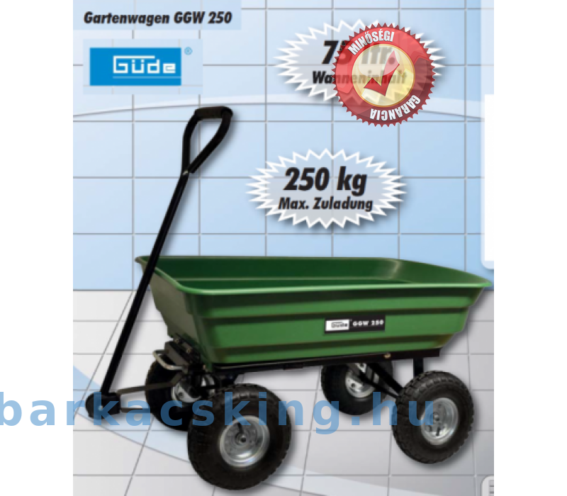 Nagy teherbírású szállító eszköz. Fém vázból, műanyag billenthető teknővel, csapágyazott kerekekkel és tömlős gumikkal. A könnyű billentést a hátsó tengely, emelés közbeni fogáspont változásával érik el. Nagy segítségére lehet egy ilyen szállítóeszköz a kerti munkálatok során.
