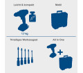 Minden egyben: mobil műhely akkus fúróval és kiterjedt tartozékkészlettel a sokoldalú munkához a műhelyben, kertben, építkezésen vagy mobil használatra