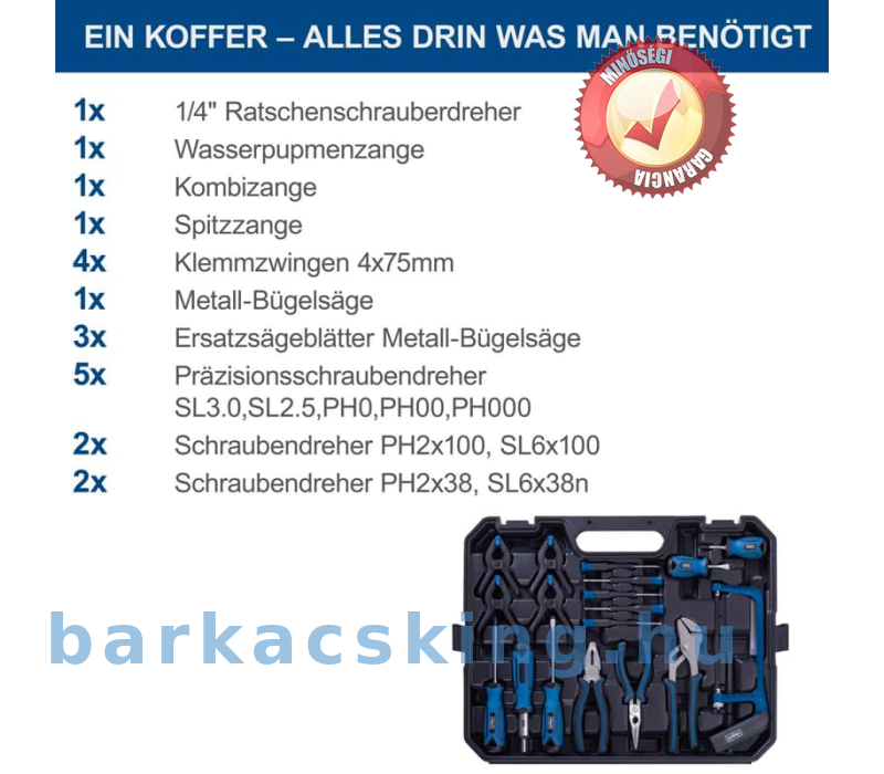 - A szerszámok egyszerű szállítása és praktikus tárolása átlátszó és robusztus műanyag kofferben