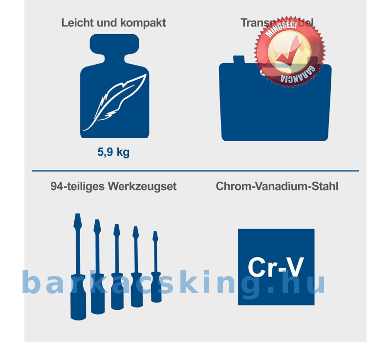 szerszámkészlet 94 részes!robusztus műanyag tokban | Kiváló minőségű króm-vanádium acélból készült szerszámok | -scheppch tb 100