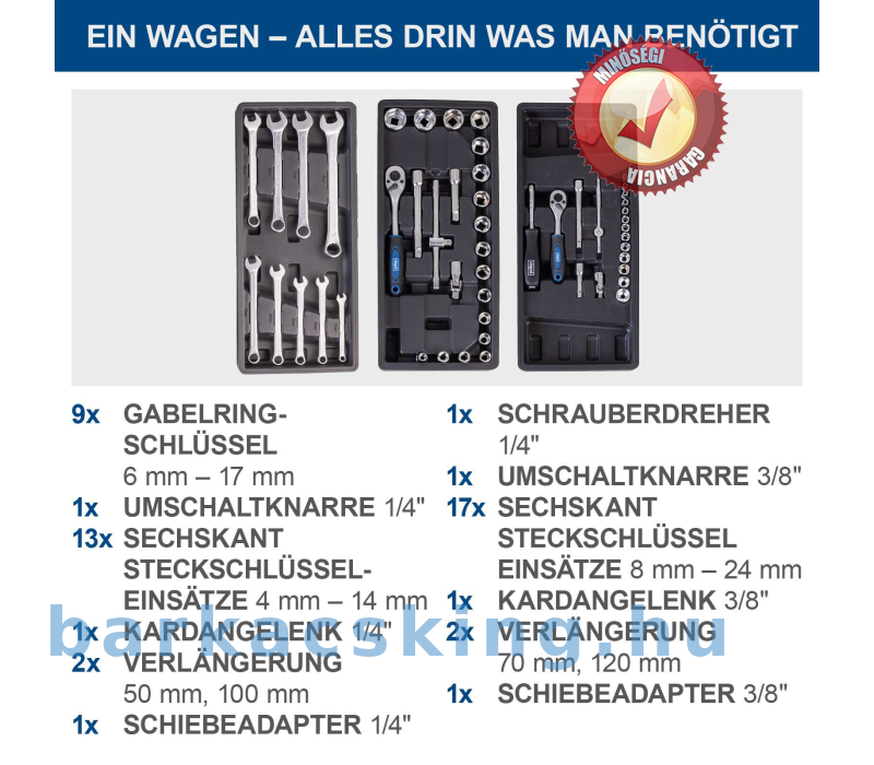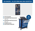 - Kompakt műhelykocsi kiterjedt, 70 darabos szerszámkészlettel