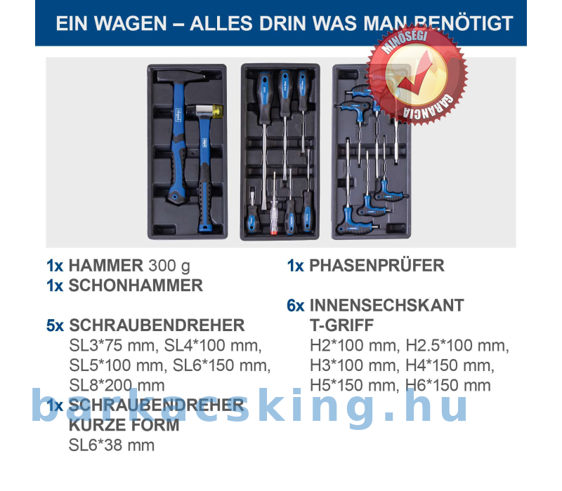 - 6 golyóscsapágyas, könnyen kihúzható fiók – ebből 3 már szerszámokkal van feltöltve
